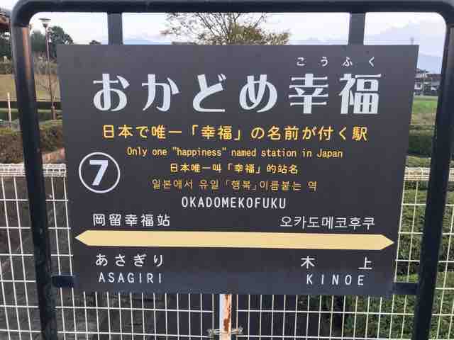 駅そばに岡留熊野座神社があり、同社は「難を留めて幸せを祈る社」として「幸福神社」の別名を持つため、駅名にも幸福が掲げられました。